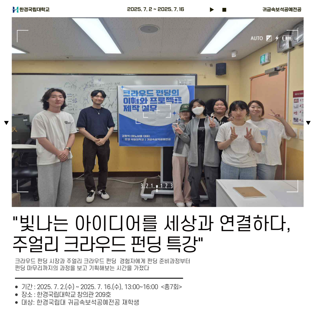 2025학년도 귀금속보석공예전공 특강_[육성사업]주얼리크라우드 펀딩 특강