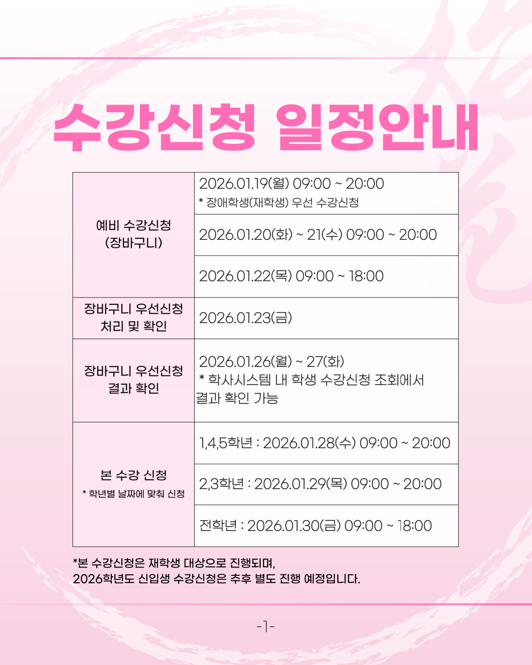 2026학년도 1학기 수강신청에 대해 안내드립니다.