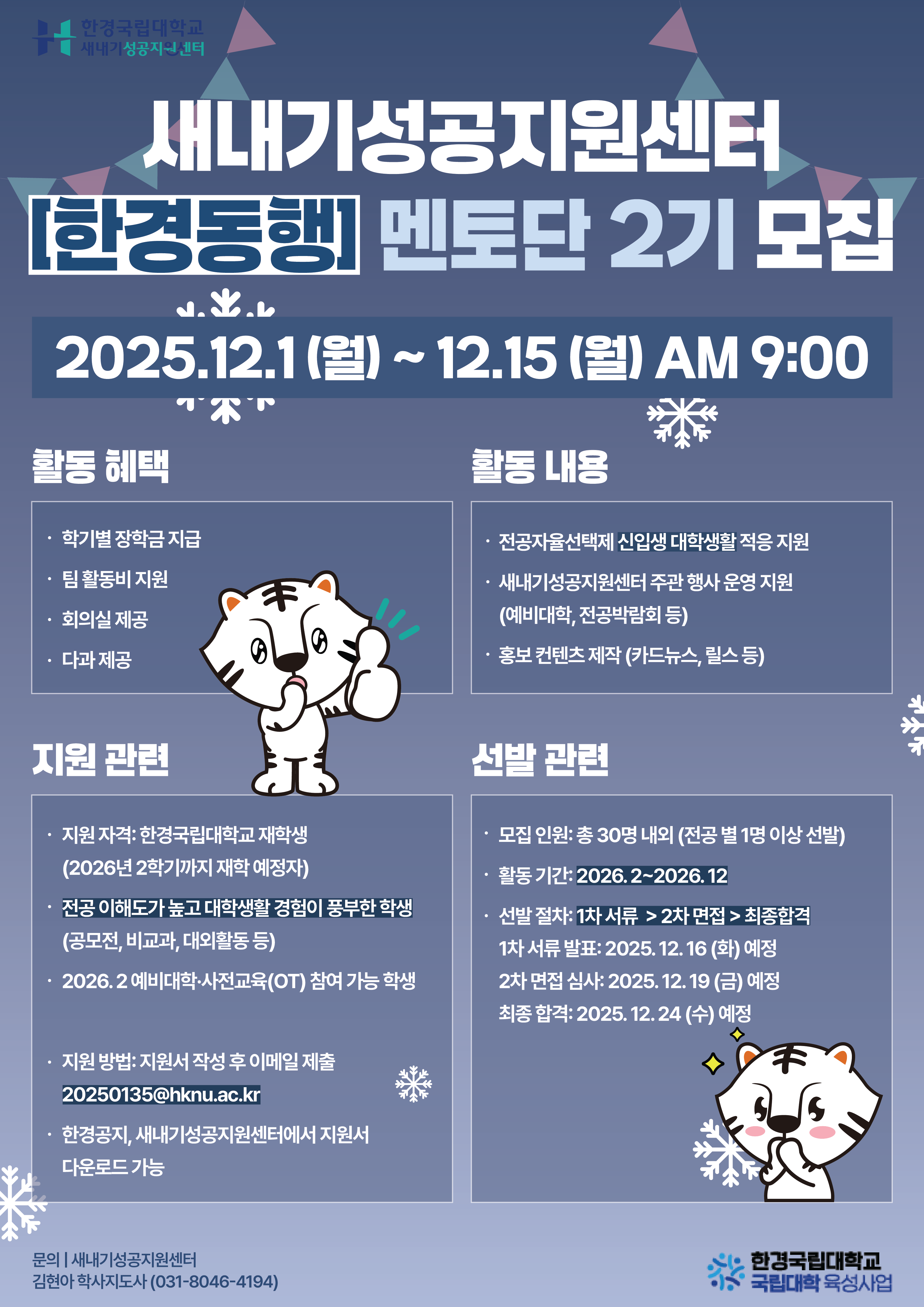 접수 기간 : 2025년 12월 1일(월) ~ 12월 15일(월) 오전 9시까지