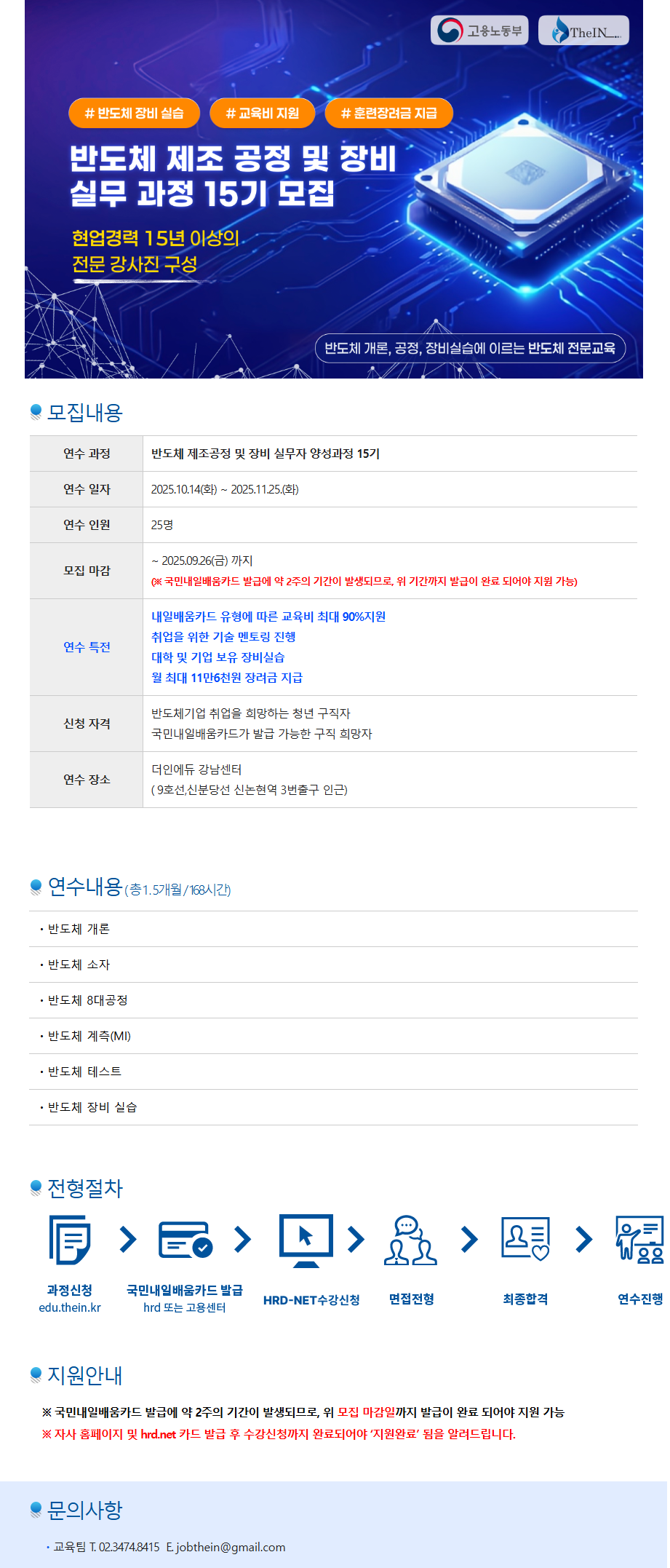 - 연수특전 : 교육비 및 훈련장려금 지원 + 대학 및 기업보유 장비실습 + 취업기술 멘토링