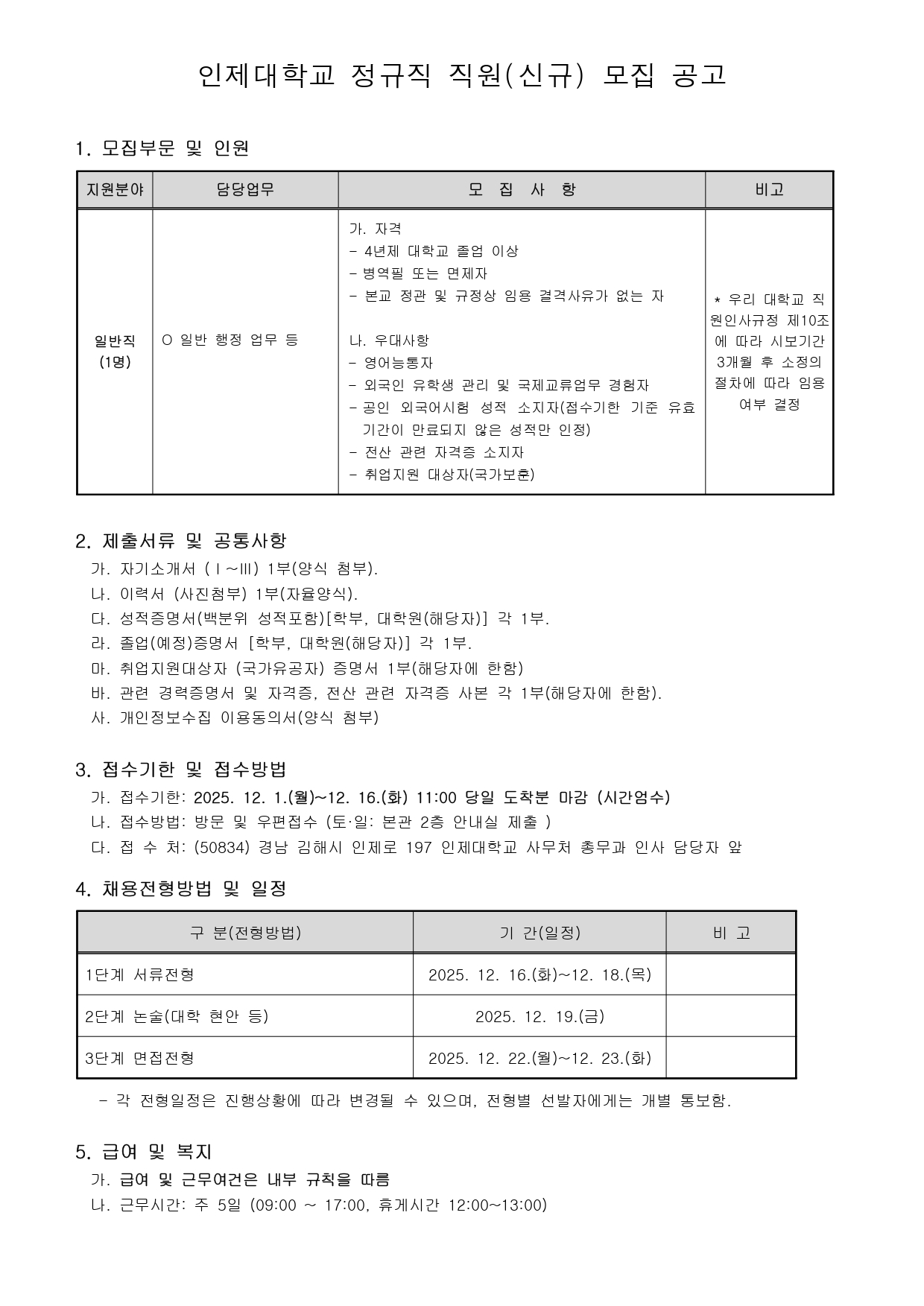 [취업] [인제대학교] 정규직 직원 모집 공고